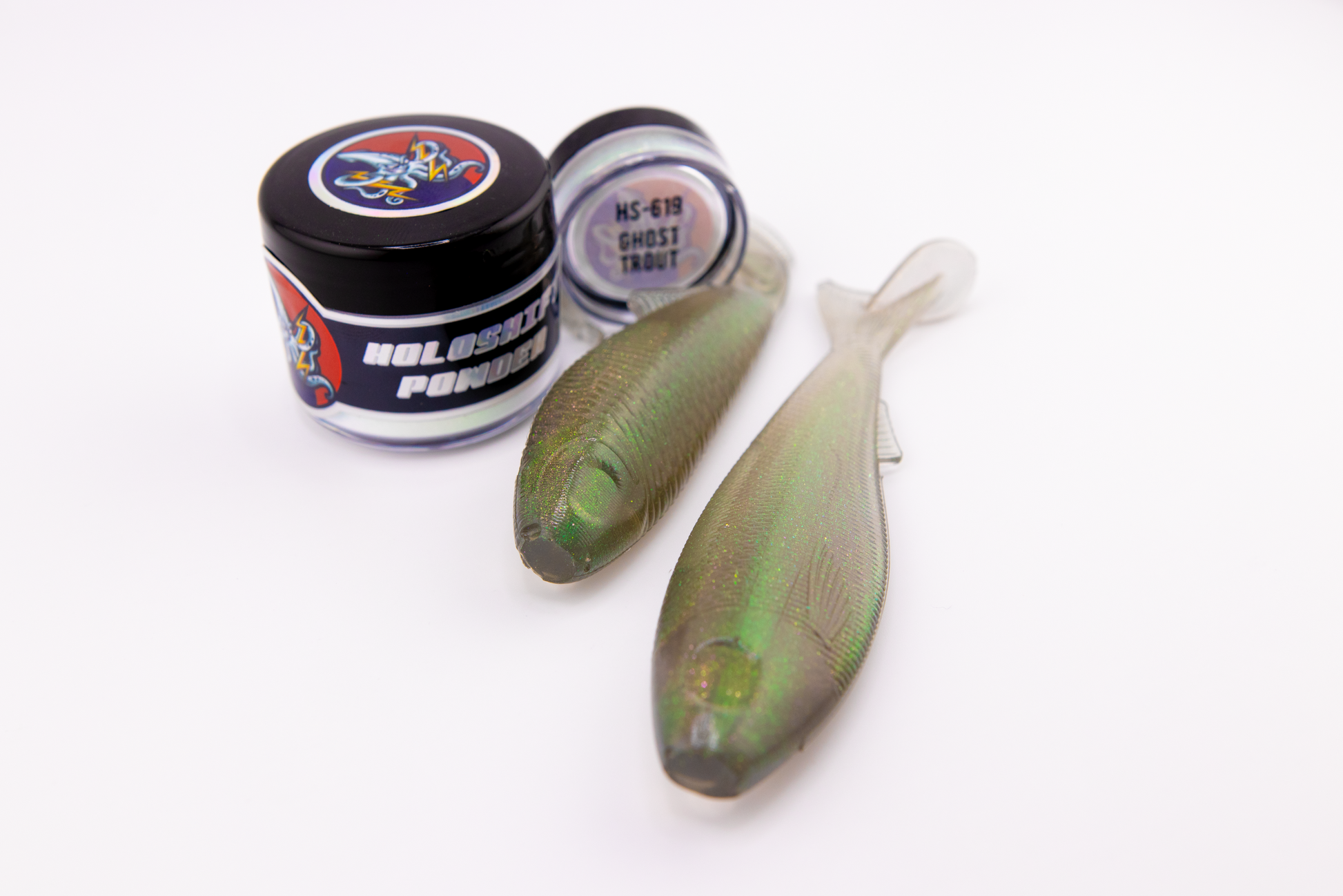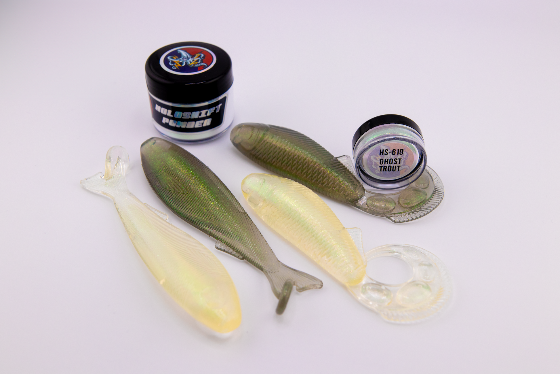 Holoshift Powders by 8bit Baits are SiO2 Silica based color shifting powder pigments designed for use in a variety of applications. Holoshift Powder is able to to be mixed into plastisol for soft plastic injection, safe for use in epoxy and resin clear coats, and the incredibly small particle size of 40 microns makes it compatible with airbrush applications as well. Holoshift Powder is also optically clear, so when used in soft plastic injection applications, the powder will visibly disappear at certain angles adding a 3rd dimension to the visible effects created in the baits.
